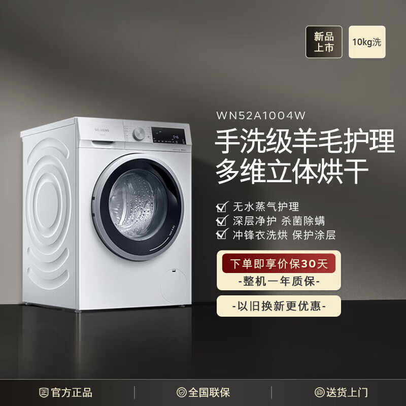 西门子(SIEMENS)iQ300 10公斤滚筒全自动洗衣机烘干机一体机 蒸气除菌 祛味除螨 羊毛洗 深层自洁 立体烘干 1004W价格:3736.00元!