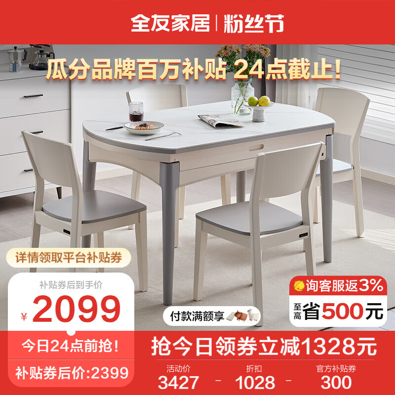 全友家居 餐桌椅 现代简约实木框架餐桌椅 可伸缩折叠岩板餐桌DW1028K价格:3427.14元!