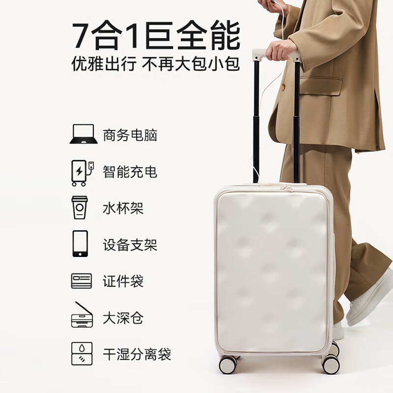 不莱玫多功能前开盖行李箱女小型侧开拉杆箱20英寸商务登机箱男 黑色价格:799.00元!