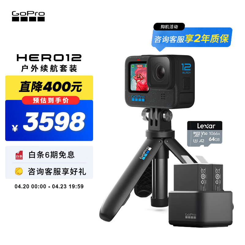 GoPro HERO12 Black运动相机 潜水防抖 vlog数码防水相机 户外续航套餐【shorty+增强双充+64G内存卡】价格:3598.00元!