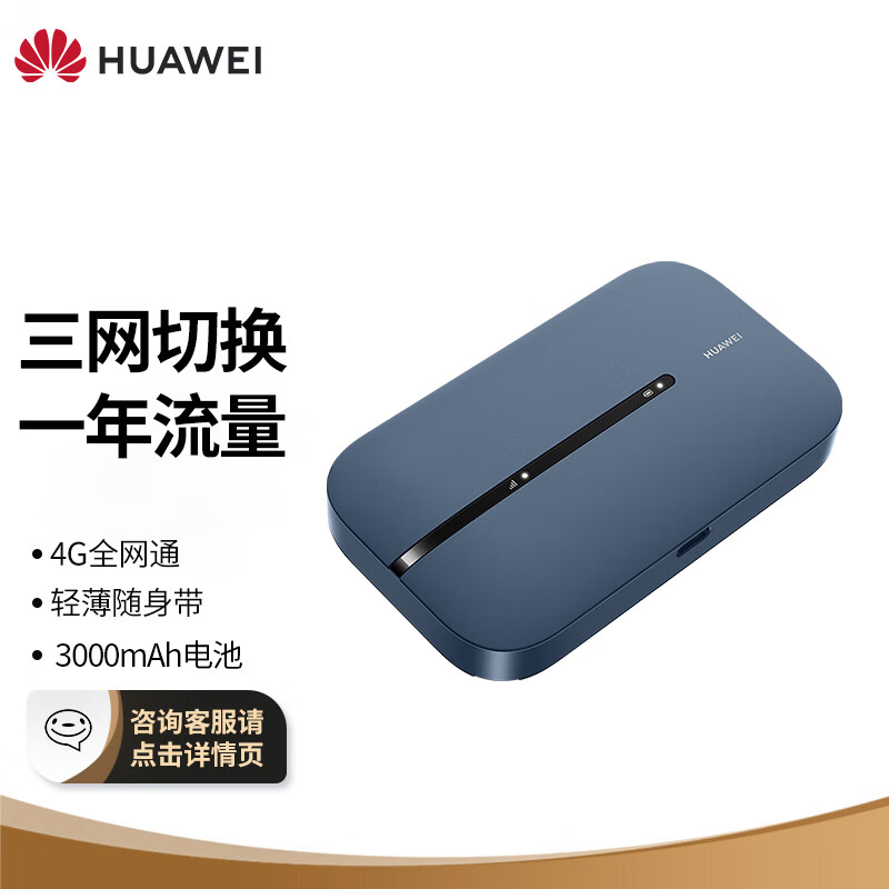 华为(HUAWEI)随行WiFi 3 Pro 4G+通 随身wifi 300M高速上网/3000mAh大电池 E5783-836(月享1500G三网年卡)价格:1269.00元!
