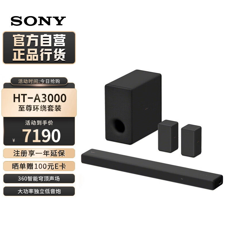 索尼(SONY)HT-A3000+SW3+RS3S 环绕套装 全景声 360智能穹顶 无线家庭影院 回音壁 Soundbar 电视音响价格:7190.00元!