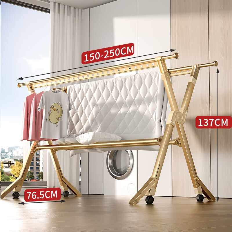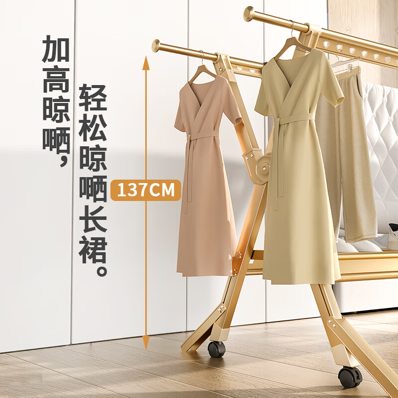 讲内幕豪客家香槟金X型托盘+滚轮+防风脚【1.5M-2.4M】落地晾衣架真实使用评测?分享三个月真相分享?