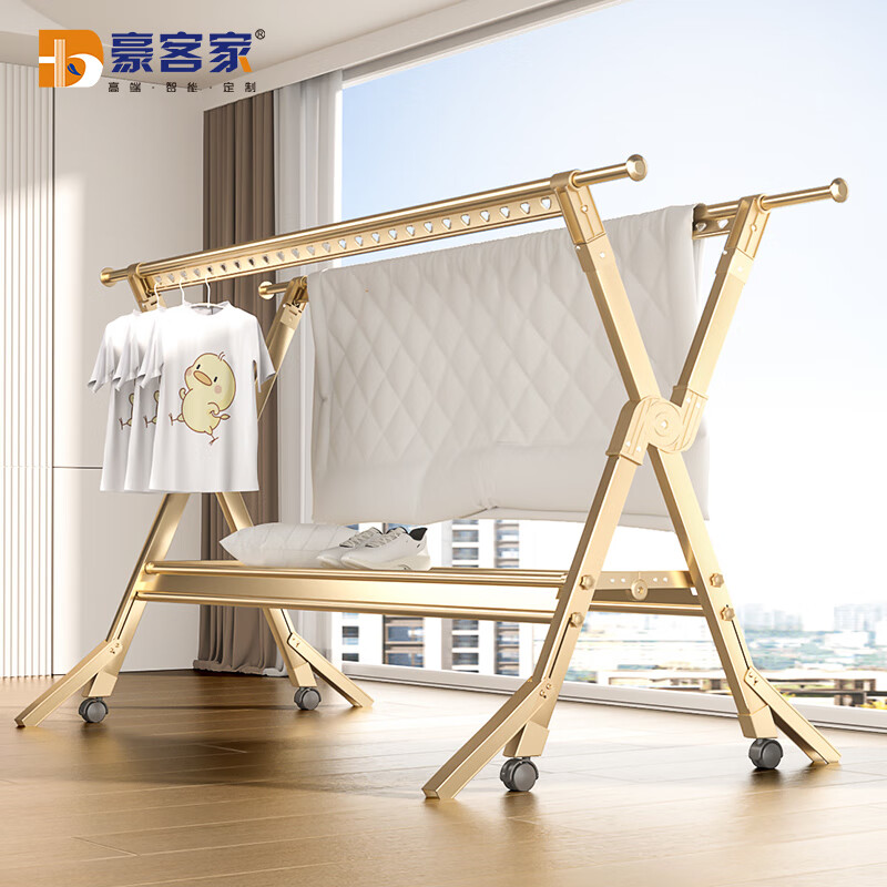 豪客家(HKG)晾衣架落地铝合金折叠伸缩室内阳台家用晒衣晒被子神器晾衣杆价格:428.00元!