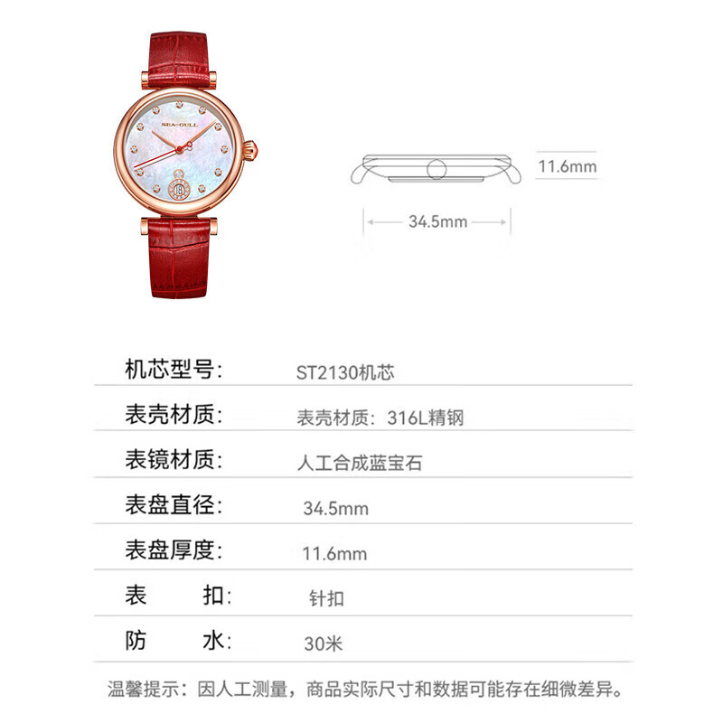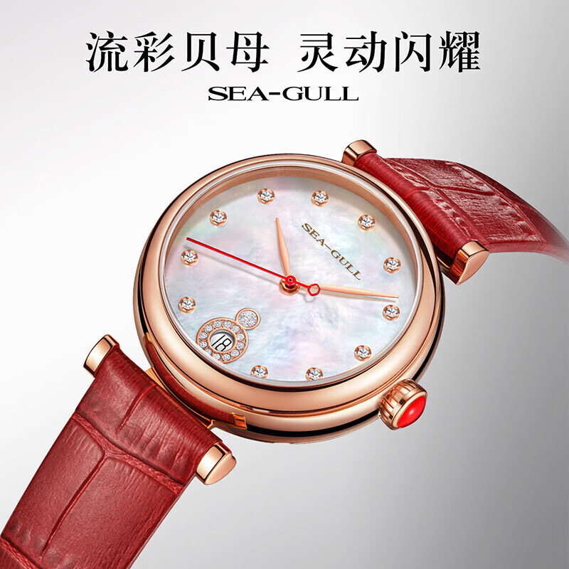海鸥(SEAGULL)手表女士自动机械表 女表礼物 心海日历贝母盘腕表519.15.6140L价格:2639.00元!