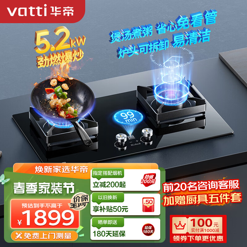 华帝(VATTI)燃气灶家用5.2kW超大火力高热效易打理分体定时换灶不改孔灶具灶台JZT-i10078B(天然气)价格:1799.00元!