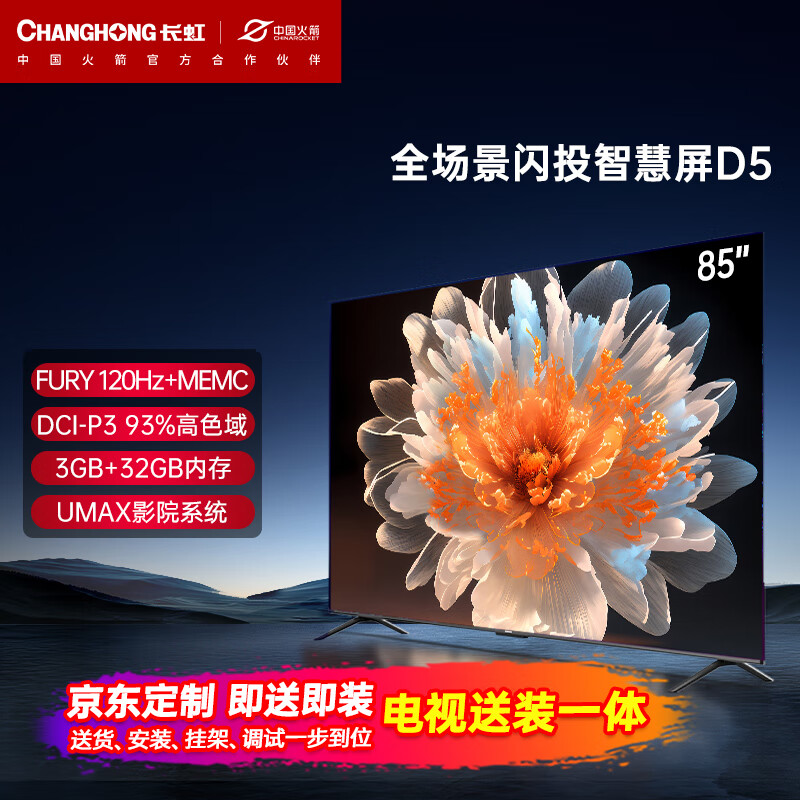 长虹电视85D5【包安装】 85英寸4K超清120Hz高刷 3+32GB 93%P3高色域 杜比音画 智能平板液晶LED电视机价格:4959.00元!