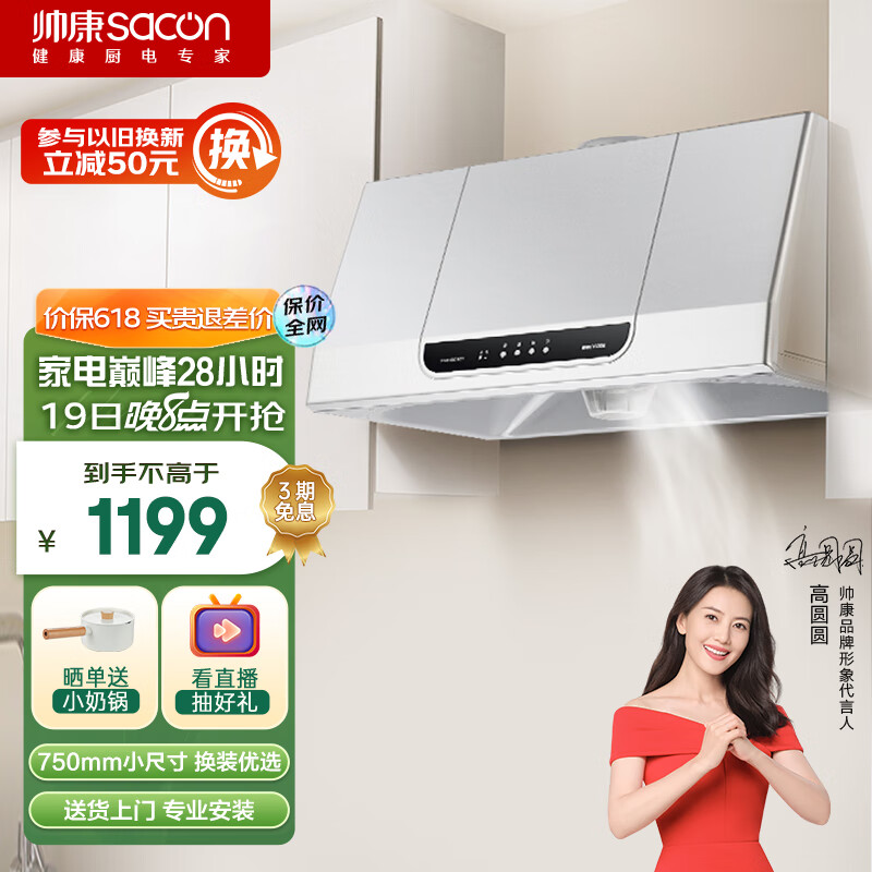 帅康(Sacon)抽油烟机 大风量脱排油烟机 家用中式吸油烟机 小尺寸换装优选 免拆洗 易操作CXW-200-MD01价格:1199.00元!