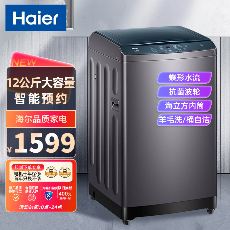 海尔(Haier)12公斤波轮洗衣机全自动家用大容量智能预约自编程桶自洁羊毛超净洗脱一体桶自洁XQB120-Z5088价格:1599.00元!