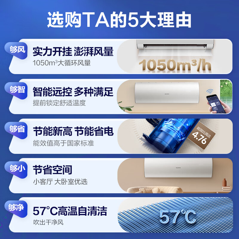 科龙(KELON)空调 大2匹 新一级能效 大风量急速冷暖 变频省电 壁挂式挂机 卧室客厅空调KFR-50GW/QY1-X1价格:3099.00元!