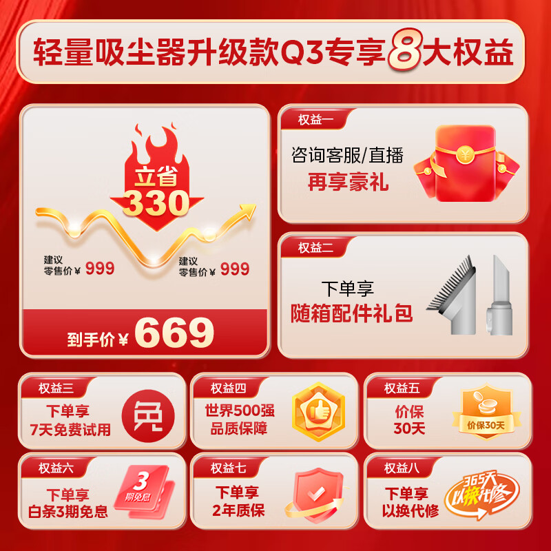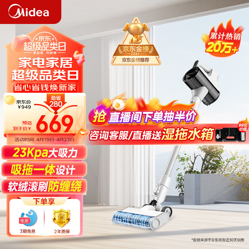 美的(Midea)吸尘器家用无线Q3 洗地机吸拖一体机 大吸力吸尘器除螨仪 手持宠物除螨刷价格:669.00元!