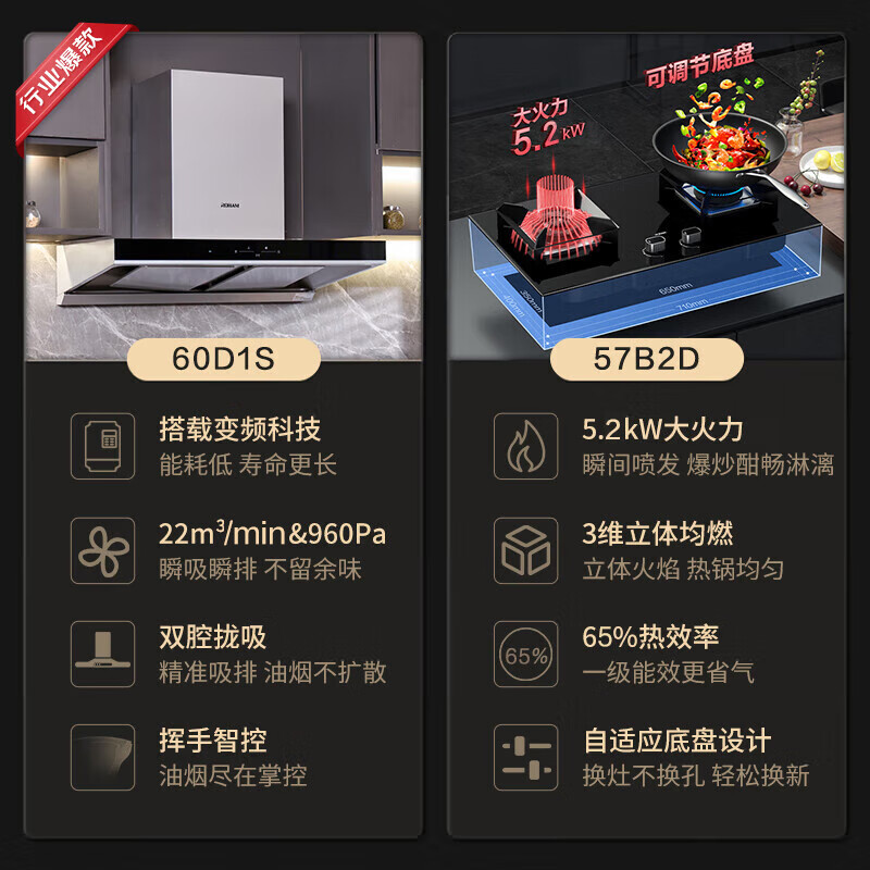 老板(Robam)抽油烟机厨房多件套 双腔变频22风量燃气灶消毒柜热水器60D1S+57B2DT+XB710A+HD660A-16价格:8597.00元!