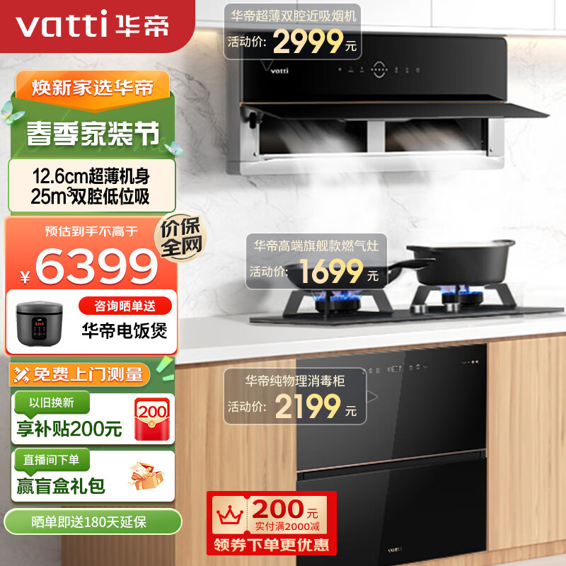 华帝(VATTI)抽油烟机理想家X6变频超薄近吸双腔25风量油烟机灶具消毒柜套装 i11210+76B+3040(天然气)价格:6399.00元!
