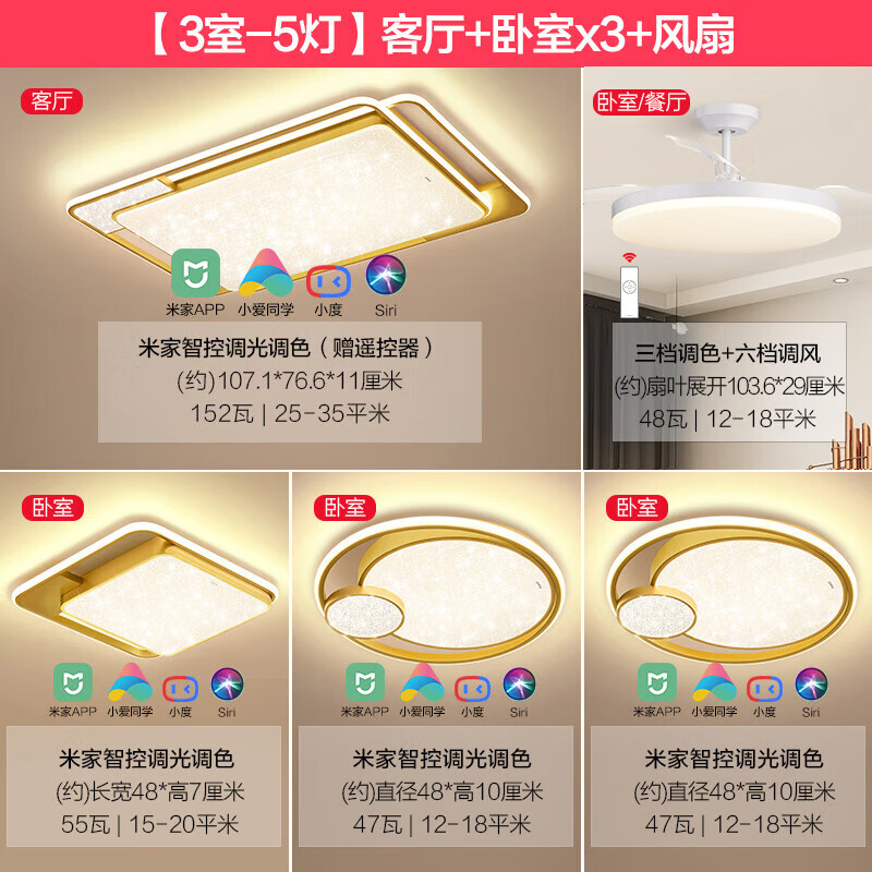 欧普(OPPLE)吸顶灯几何现代简约LED客厅卧室餐厅灯具套餐智能语音调光 套餐5价格:5349.00元!