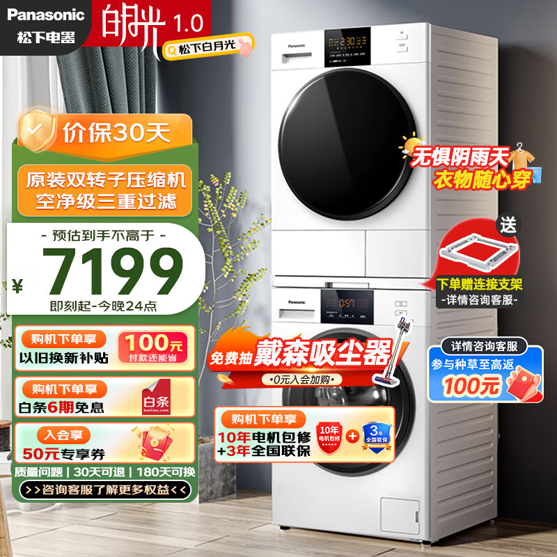 松下(Panasonic)洗烘套装 白月光1.0 10kg滚筒洗衣机+9kg热泵烘干机 变频压缩机 羊毛洗 户外服洗烘 31JED+EH900W价格:7199.00元!