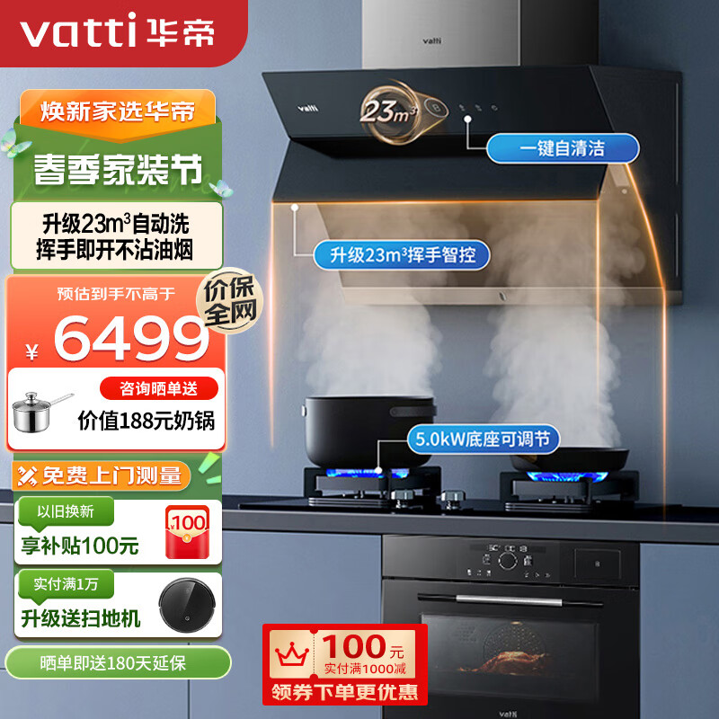 华帝(VATTI)小尺寸抽油烟机燃气灶具微蒸烤家用厨房三件套装侧吸式油烟机i11170+72B+23011(天然气)价格:6499.00元!
