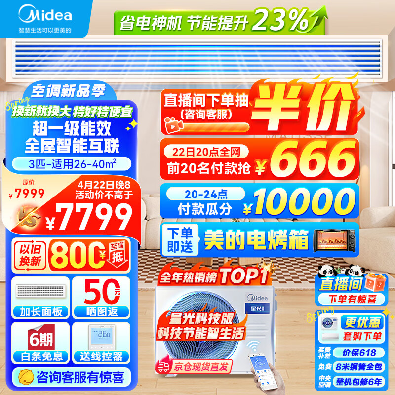 美的(Midea)中央空调风管机一拖一3匹一级能效隐形嵌系列星光科技版全屋智联KFR-72T2W/B3DN1-XG(1)Ⅲ京派价格:7999.00元!