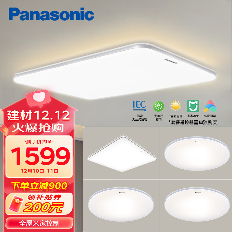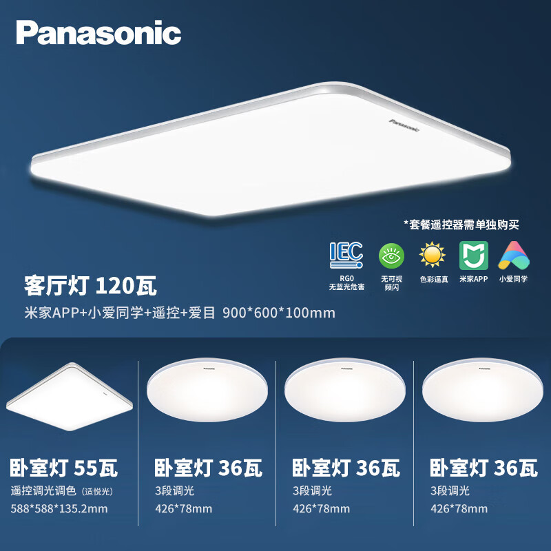 松下(Panasonic)led智能吸顶灯客厅灯米家智控现代简约灯具灯饰卧室灯套餐价格:2499.00元!