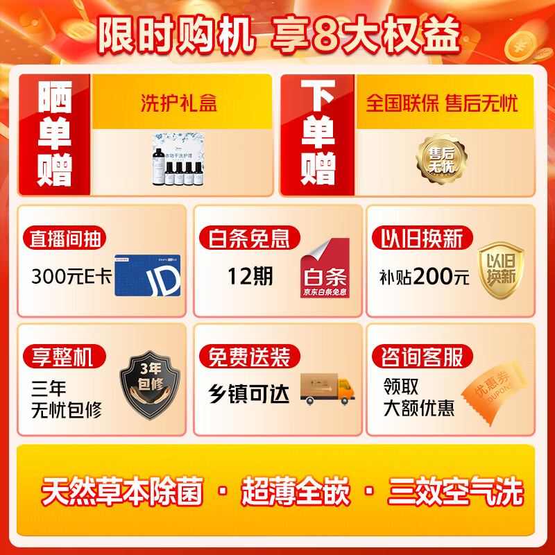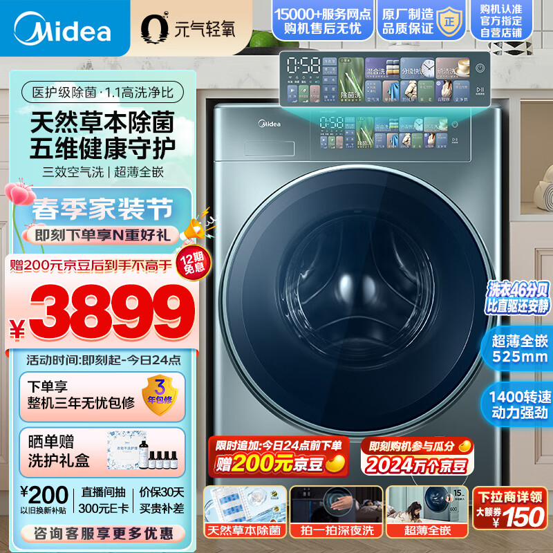 美的(Midea)滚筒洗衣机全自动 AIR5 元气轻氧系列 MD100SAIR 洗烘一体机 天然草本除菌 超薄全嵌 1.1洗净比价格:4099.00元!