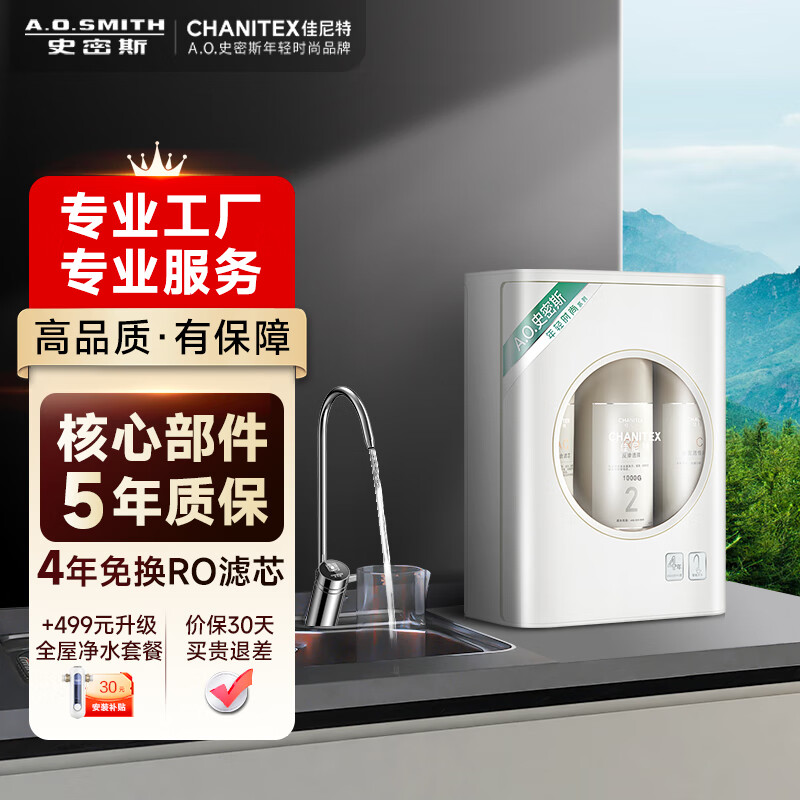 史密斯(A.O.SMITH)佳尼特净水器家用厨下式直饮净水机专利4年RO膜反渗透滤芯1.6升/分钟大眼萌CXR600-A1 以旧换新价格:2899.00元!