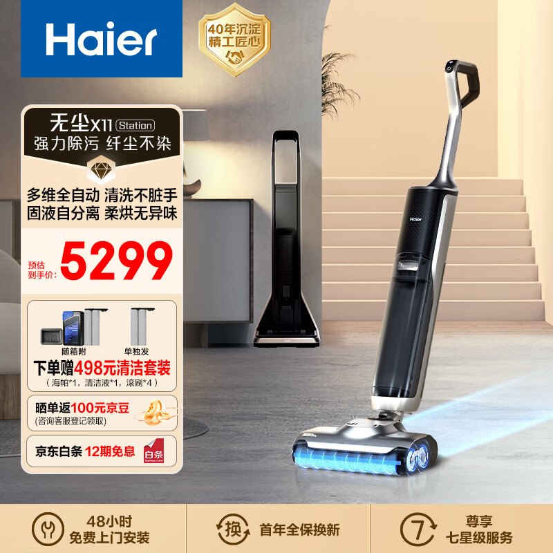 海尔(Haier)无线智能家用洗地机吸洗拖一体自动清洗全自动拖地机扫地机器人自动上下水无尘X11station基站款价格:5299.00元!