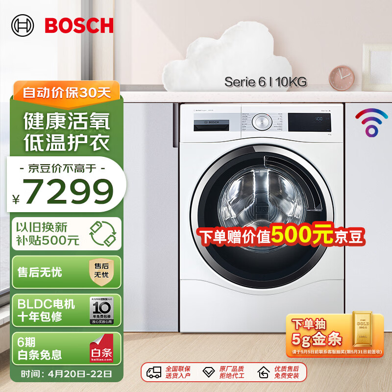 博世(BOSCH)【云朵白·活氧版】6系10KG全自动家用大容量1400转高效智能除菌除螨祛味滚筒洗衣机WGC354B01W价格:8599.00元!