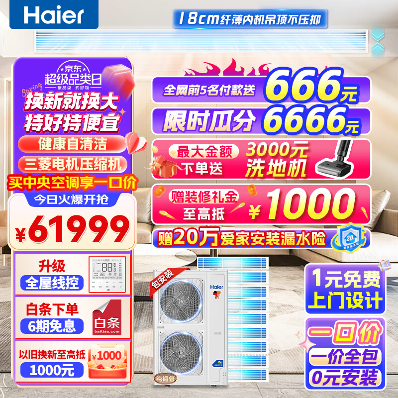 海尔(Haier)中央空调一拖九风管机12匹小多联一级能效全直流变频嵌入式RFC335MXS-A价格:61999.00元!
