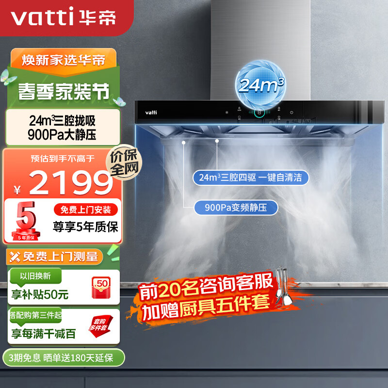 华帝(VATTI)抽油烟机顶吸三腔三吸变频创世S6欧式家用吸油烟机 24风量大吸力低噪挥手智控一键自清洁 i11206价格:2199.00元!