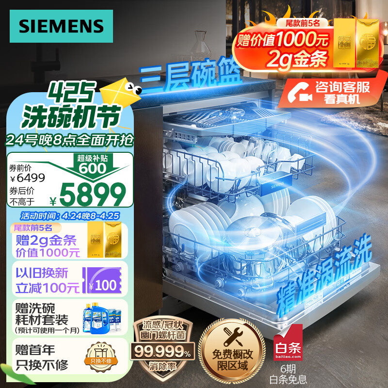 西门子16套大容量除菌消毒 独嵌两用全能舱洗碗机嵌入式 精准涡流洗 智能抽湿烘干 96h存储 SJ23HI88MC价格:6499.00元!
