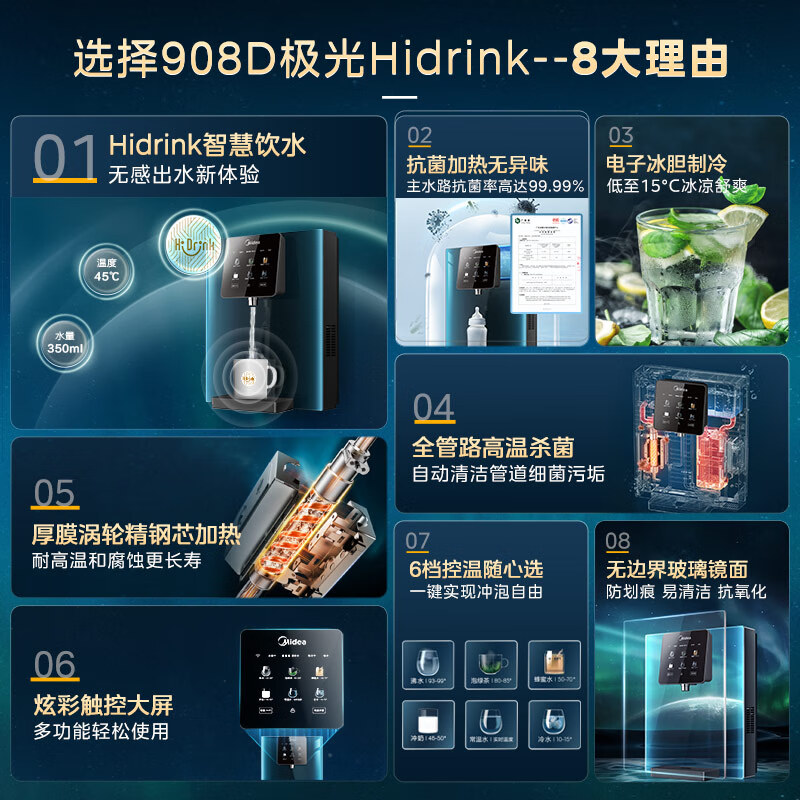 美的(Midea)家用净水器伴侣管线机 记忆智饮触控 全通量匹配 高温杀菌 壁挂式直饮 速热饮水机MG908-D升级款价格:2599.00元!