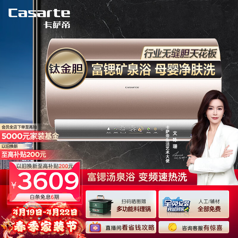 卡萨帝(Casarte)80升家用储水式电热水器富锶矿泉小私汤3.3KW变频速热10倍增容大水量智控一级能效 CEC8005-CL3U1价格:3799.00元!