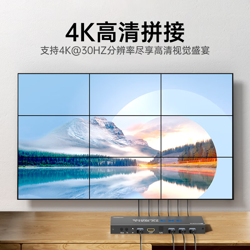 毕亚兹HDMI画面拼接器3X3 4K高清 KVM45价格参考: