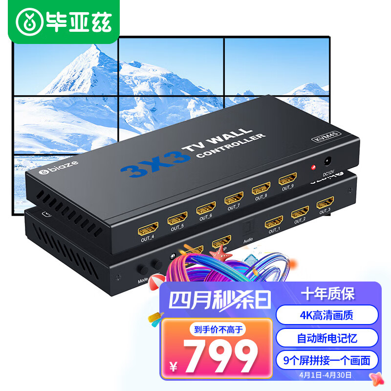 毕亚兹 HDMI画面拼接器 4K高清9路3x3电视拼接屏多屏宝控制盒液晶屏融合处理器 KVM45价格:799.00元!