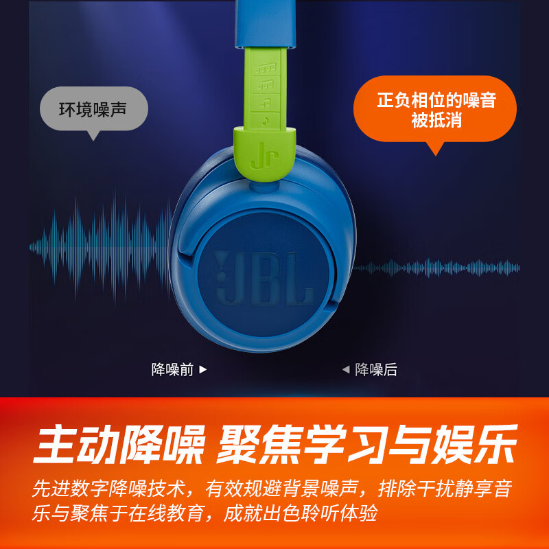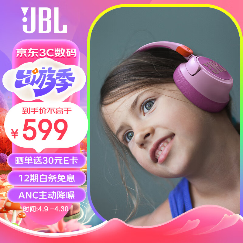 JBL JR460NC 头戴式降噪蓝牙耳机 益智沉浸式无线大耳包玩具英语网课听音乐学习学生儿童耳机 樱花紫价格:679.00元!