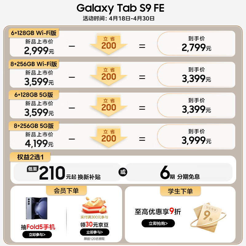 三星Tab S9 FE价格参考: