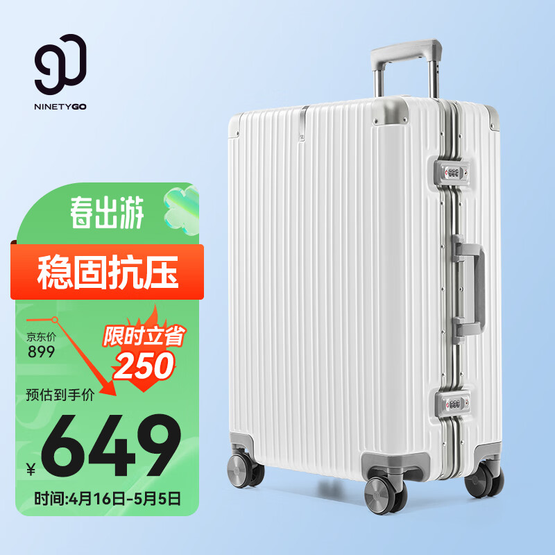 90分PC旅行箱轻质铝框行李箱防刮商旅两用拉杆箱28英寸托运箱百合白价格:729.00元!