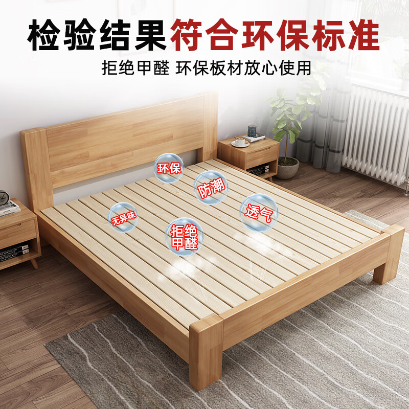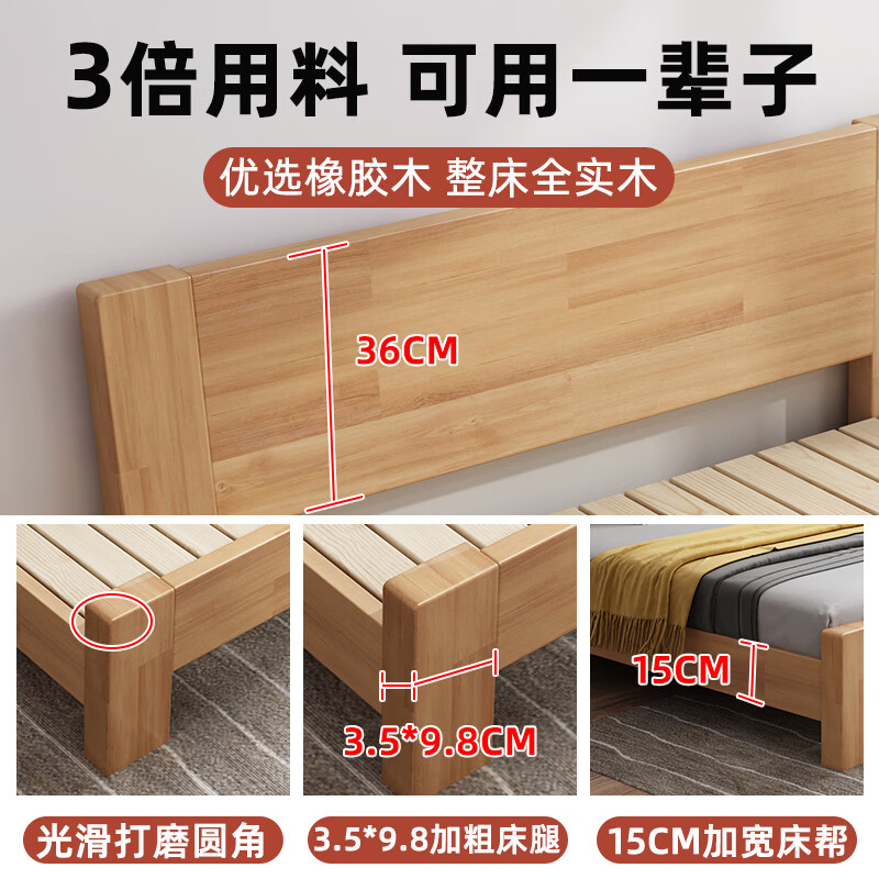 意米之恋橡胶木床实木床 主卧双人床 卧室家具 品质大板 208cm*120cm*80cm价格:879.00元!