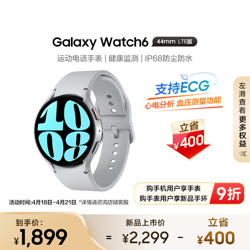 三星Galaxy Watch6 eSIM独立通话/智能手表/运动电话手表/ECG心电分析/血压手表/健康监测 44mm 星系银价格:1999.00元!