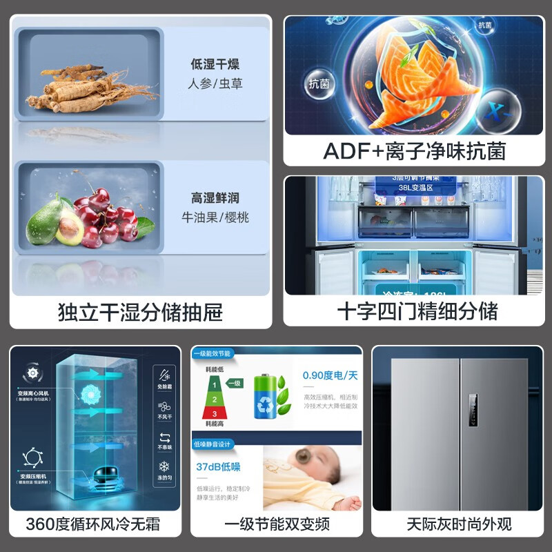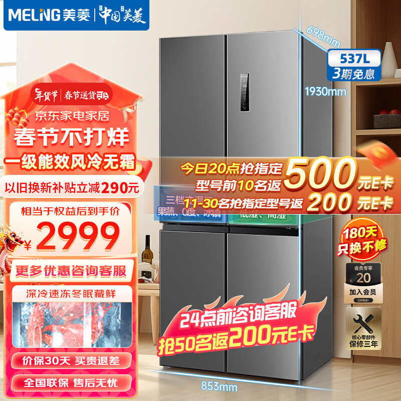 美菱(MeiLing)冰箱537升十字对开门家用冰箱四开门多门节能一级变频风冷无霜大容量冰箱双开门 BCD-537WP9CX 干湿分储价格:2743.00元!