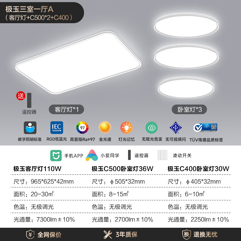 Yeelight易来led全光谱吸顶灯卧室餐厅超薄低蓝光现代简约客厅灯3室1厅A价格:3899.00元!