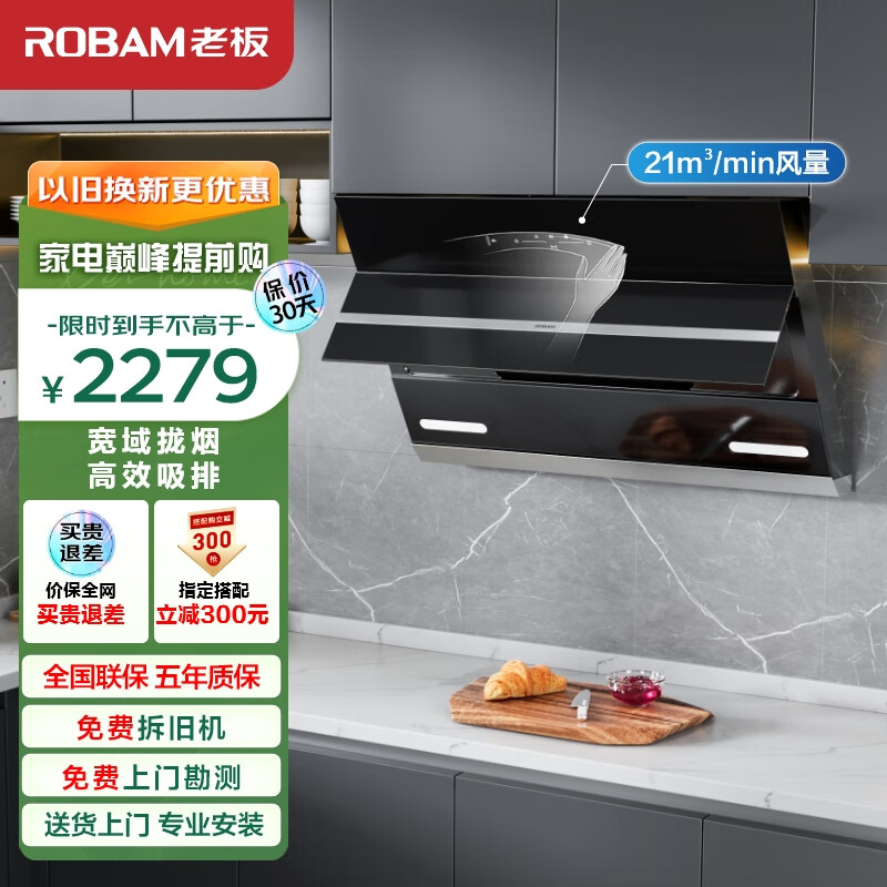 老板(Robam)吸油烟机免拆洗侧吸式油烟机家用油烟机21风量大吸力挥手智控抽油烟机27A3H抽烟机价格:2279.00元!