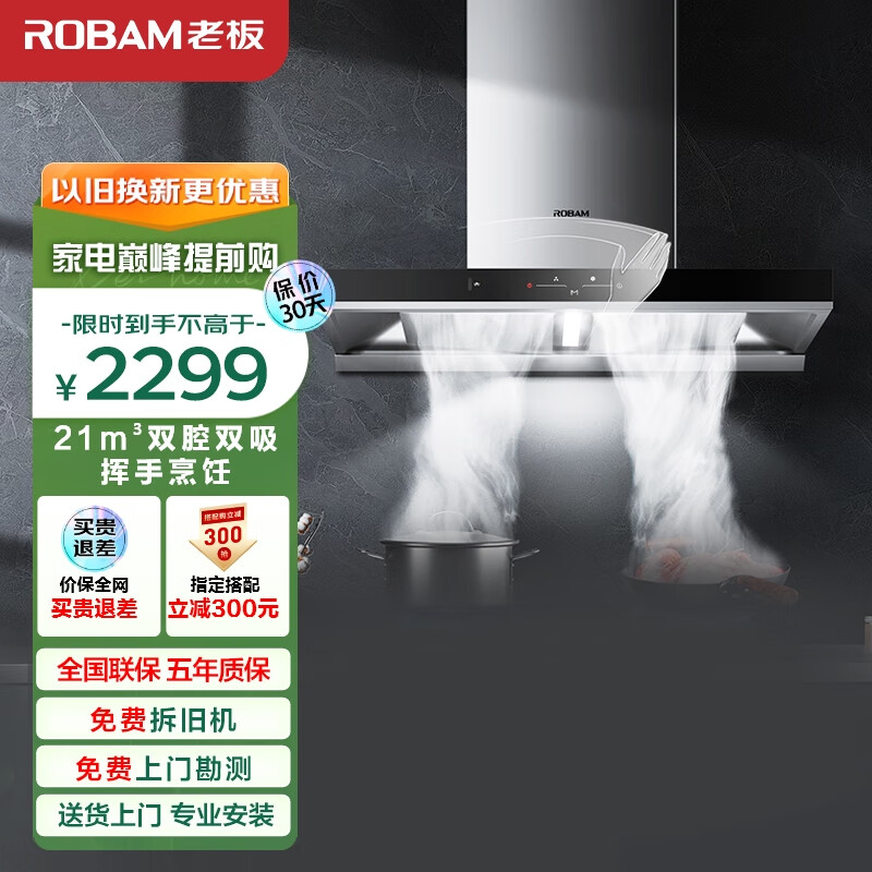 老板(Robam)抽油烟机欧式顶吸式双腔油烟机家用21风量吸油烟机挥手智控免拆洗易洁排油烟机以旧换新60A1抽烟机价格:2299.00元!