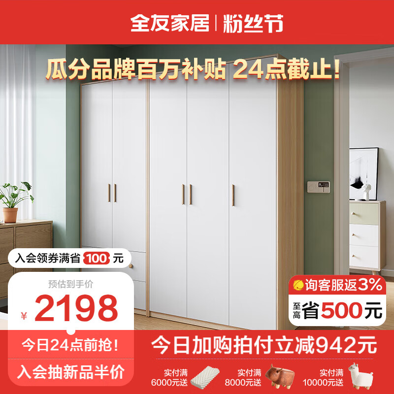 全友家居 衣柜现代北欧风二门三门衣柜组合卧室储物平开门衣柜126331价格:3140.00元!