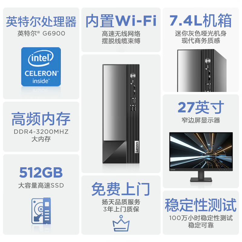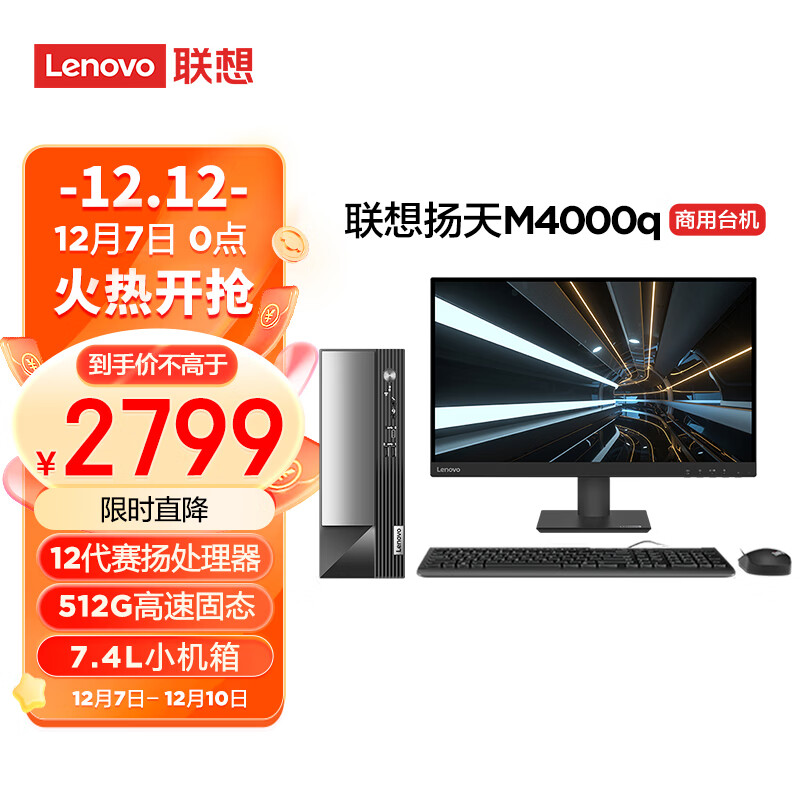 联想(Lenovo)商用办公台式机电脑主机 扬天M4000q 英特尔处理器(G6900 8G 512G SSD Win11)27英寸价格:2799.00元!
