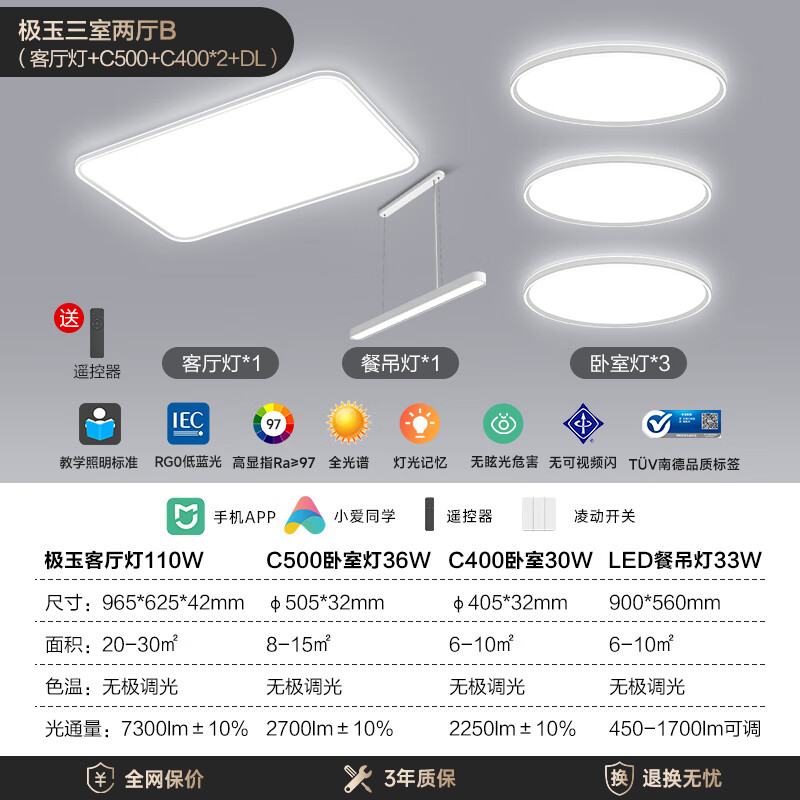 Yeelight易来led全光谱吸顶灯卧室餐厅超薄低蓝光现代简约客厅极玉3室2厅B价格:4199.00元!
