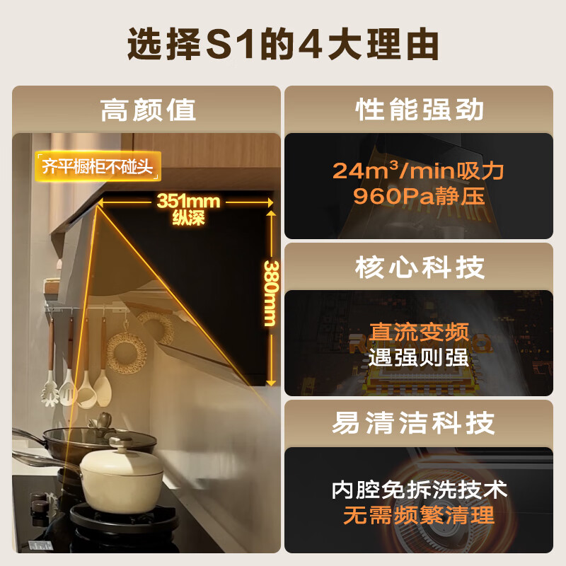 4、名气油烟机质量,技术选进,挥手开关,免清洗,是一次满意购物。