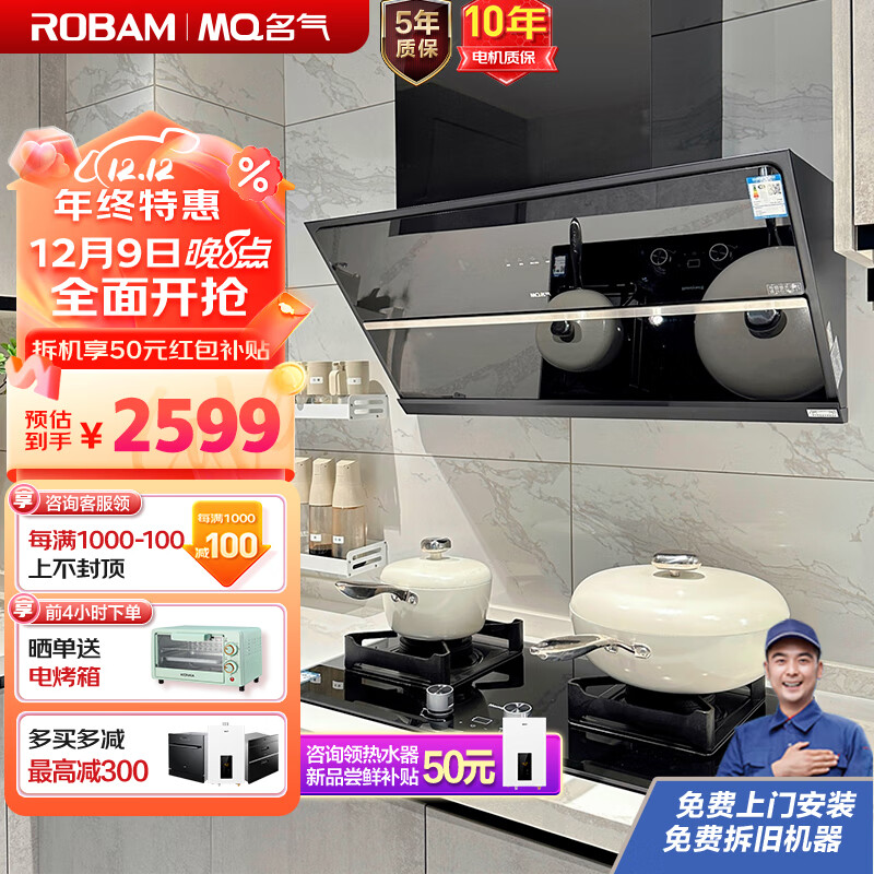 名气(MQ)老板抽油烟机侧吸变频超薄近吸油烟机灶具S1烟灶套装家用24大吸力960Pa静压燃气灶A3801-S套装价格:2599.00元!