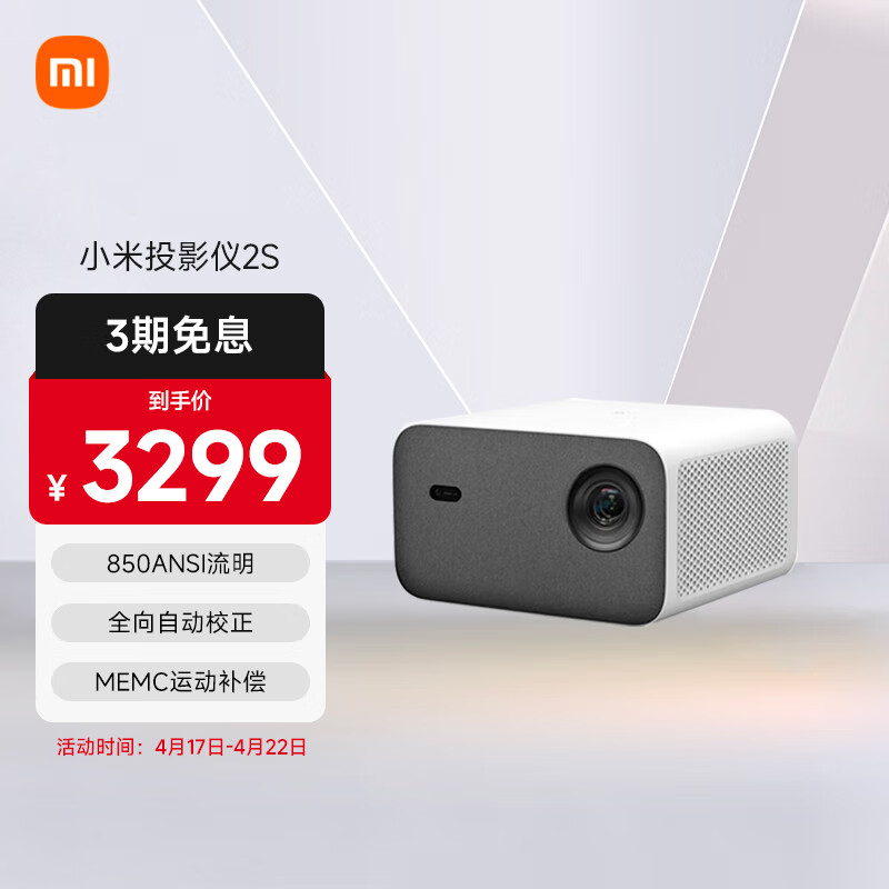 小米投影仪2S 投影仪家用 家庭影院 (MEMC运动补偿、全向自动校正、智能家居互联)价格:3299.00元!