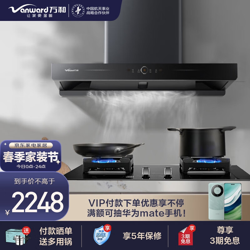 万和(Vanward)欧式油烟机顶吸式 家用自清洗 22m3/min大吸力烟灶套餐抽油烟机燃气灶具套装 X739A+T9L96(天然气)价格:2248.00元!