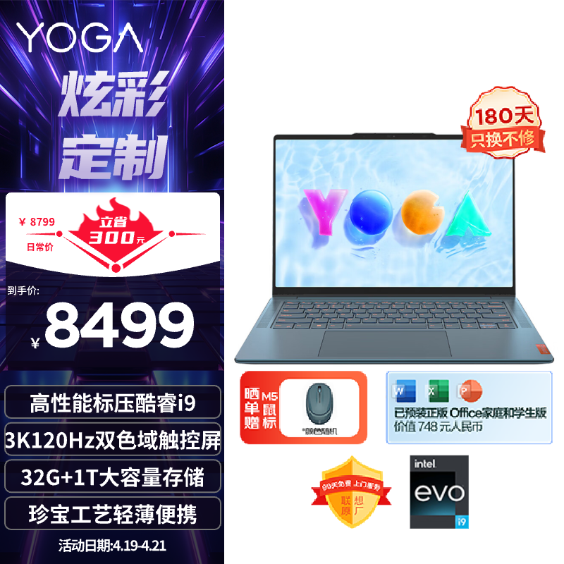 联想笔记本电脑YOGAPro14s高能触控本 高性能标压酷睿i9 14.5英寸轻薄本32G 1T 3K高刷屏日光映潮 商务价格:8499.00元!